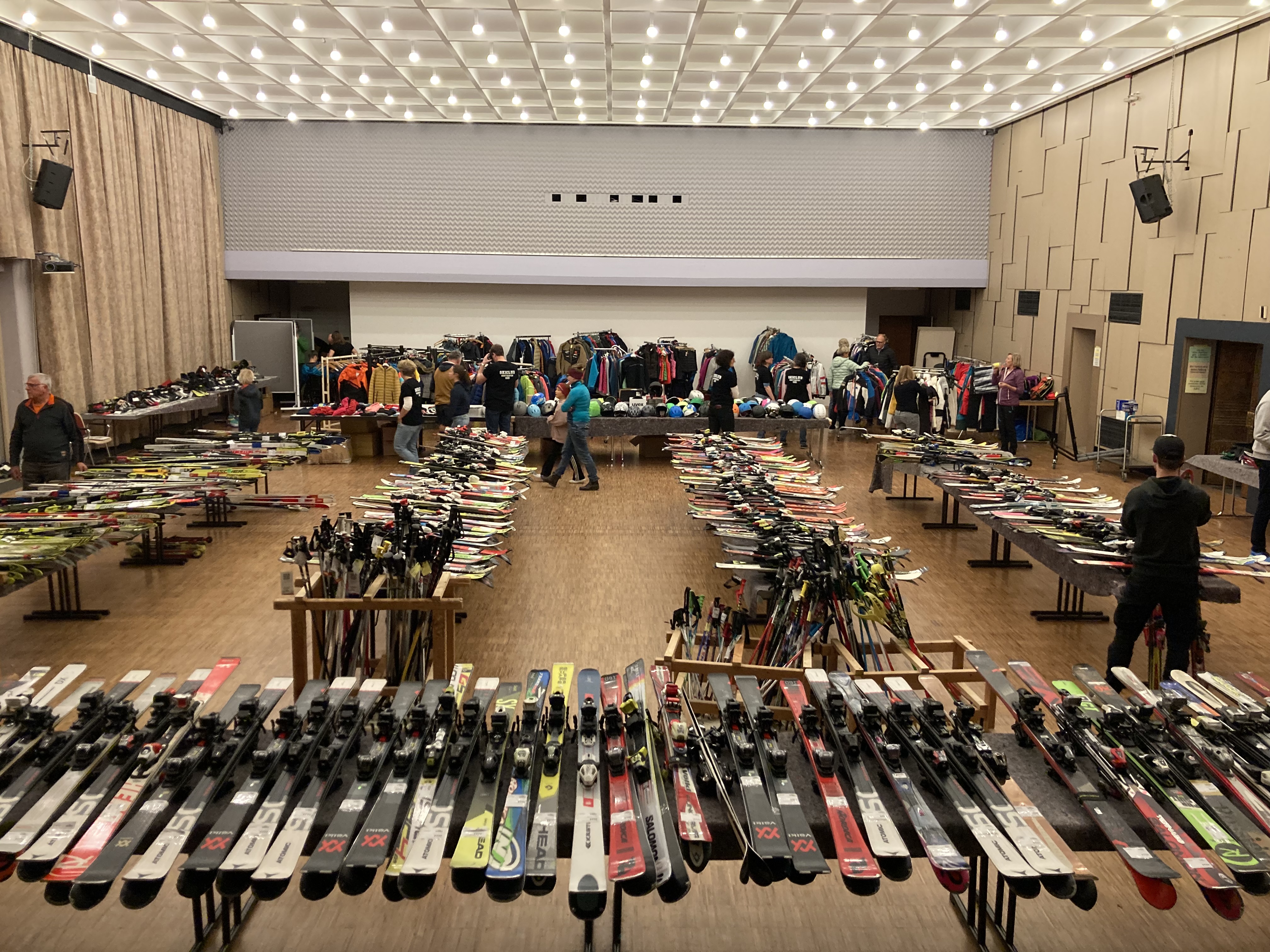 Wintersportbegeisterte finden dort alles rund um das Thema Wintersport. Ski - sowohl Langlauf, alpin und Tourenski - Skischuhe, Wintersportbekleidung und -Ausrüstung sind im Angebot, natürlich alles aus zweiter Hand. Die Übungsleiter und Trainer des Skiclubs stehen beim Verkauf beratend zur Seite. Der Ski-Basar
