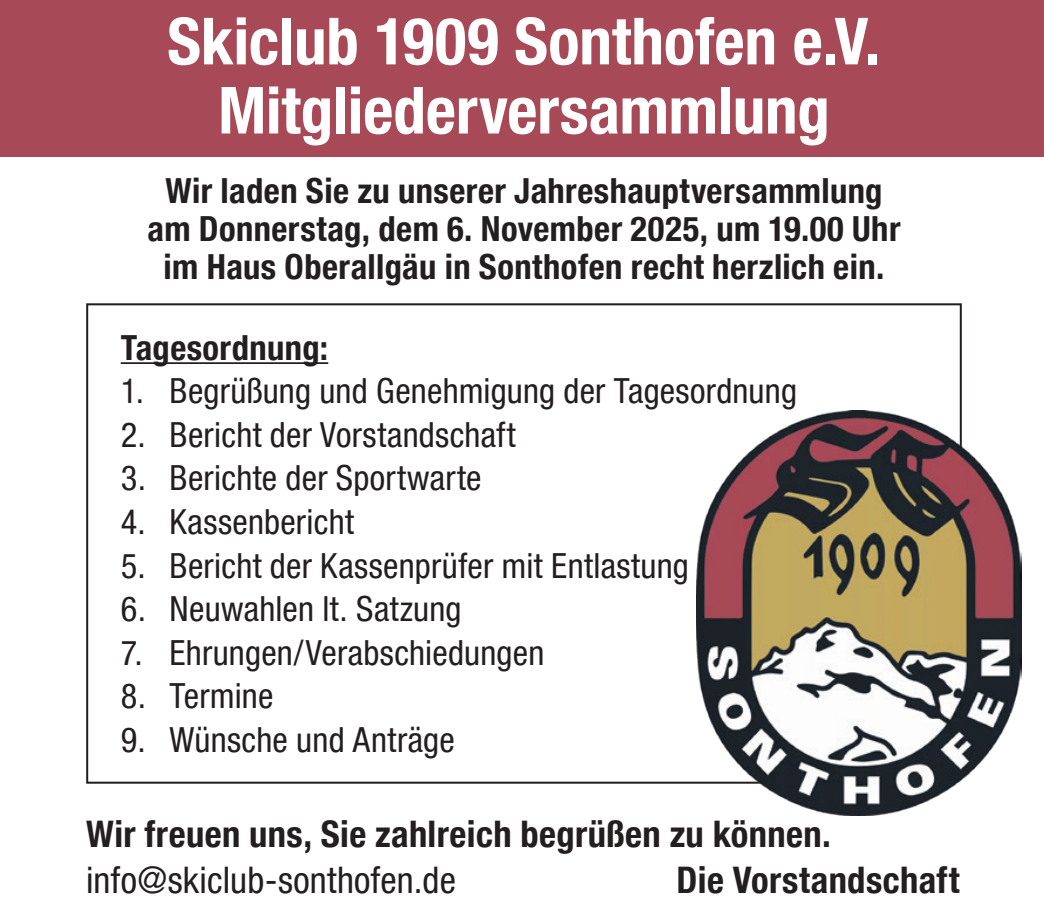 Jahreshauptversammlung - Skiclub Sonthofen weiter auf Erfolgskurs